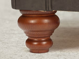 Handmade solid wood feet finished in matt Walnut. Front feet are beehive style and back feet are traditional curved legs – all removable if required.