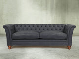 Darcy is noteworthy fellow, a 4 Seat Chesterfield Sofa of merit that’s thoroughly modern with lots of style and charisma. A solid hardwood frame of generous proportions, blended with our extra soft fillings, fully sprung seat base and specially developed deluxe cushion, conjure up pure comfort with real panache. Upholstered in our Midnight Ol’ School Leather, a soft matt leather with a crackled texture that’s hardwearing making it super family friendly. Hand dyed to create a rich fusion of black and dark blue to produce a rich black as crisp and clear as the night sky.