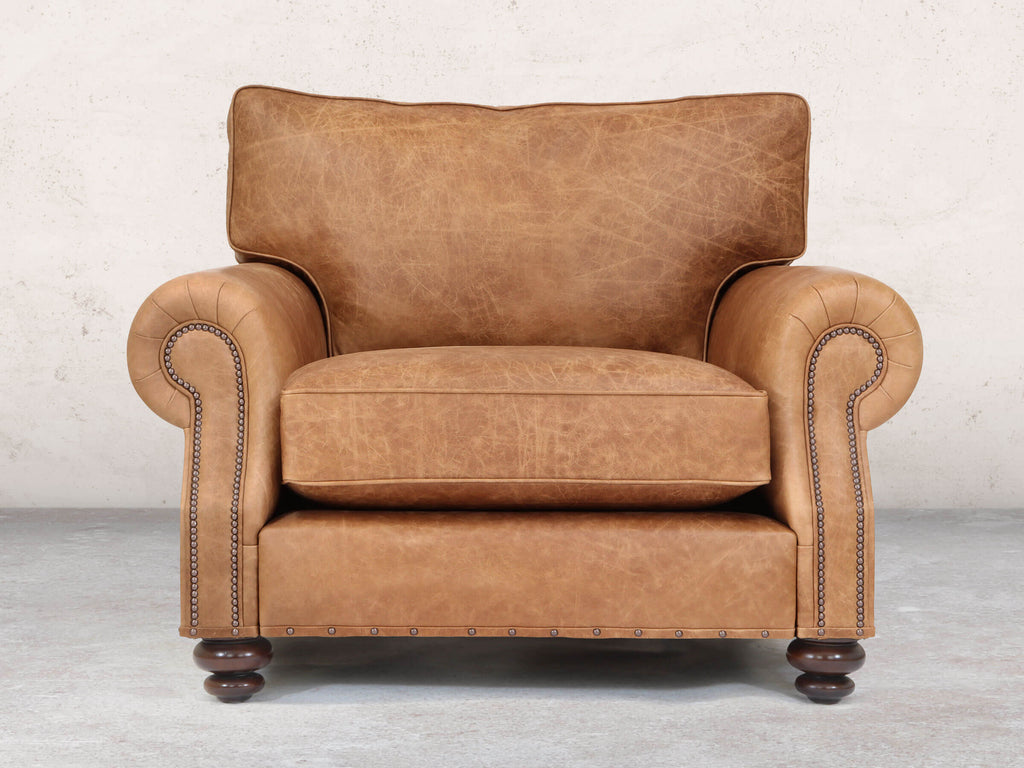 Hetty is a natural evolution of the traditional Chesterfield, designed to introduce more comfort and a relaxed, modern feel. The signature scroll arms have been lowered, and oversized, plush back cushions replace the traditional deep buttoning, creating a sumptuous, supportive feel that both embraces and cradles. The result is an exceptionally comfortable sofa with a clean, higher, box-like profile, while the gentle curves and sculpted detailing in the arms and sides preserve the refined character of the original. Subtle accents such as piping, antiqued studs, and cottage bun feet add a timeless finish that feels both luxurious and inviting. Upholstered in premium leather, Hetty combines modern comfort with enduring elegance. Handmade in the heart of England, every Hetty is made-to-order by our small team of skilled upholsterers using only the finest materials, from the solid hardwood frame and premium reflex foam fillings to carefully selected leather. With more than sixty hours of meticulous craftsmanship in each piece, Hetty delivers unrivalled durability and outstanding comfort.