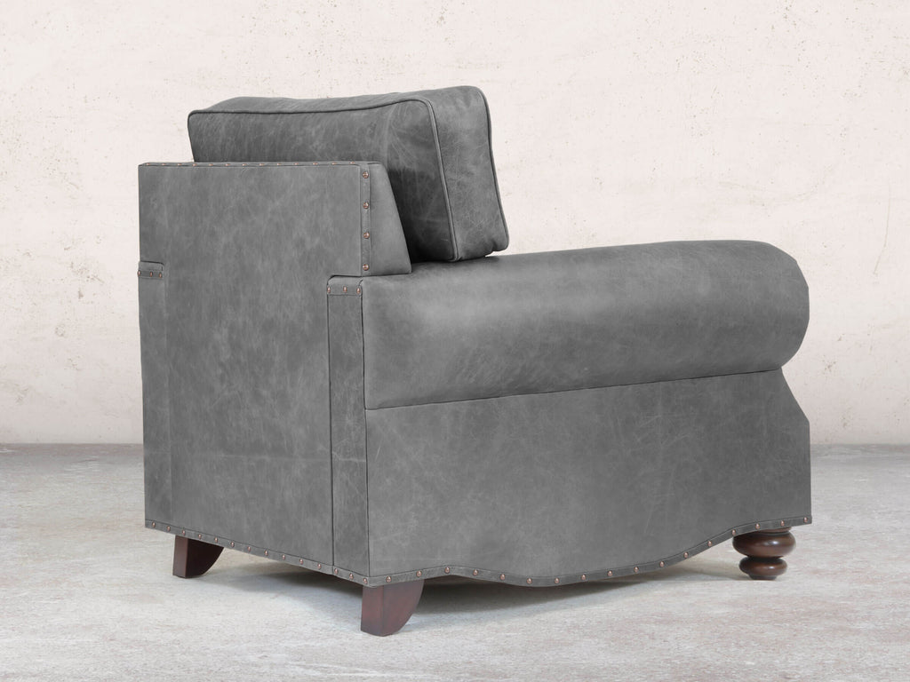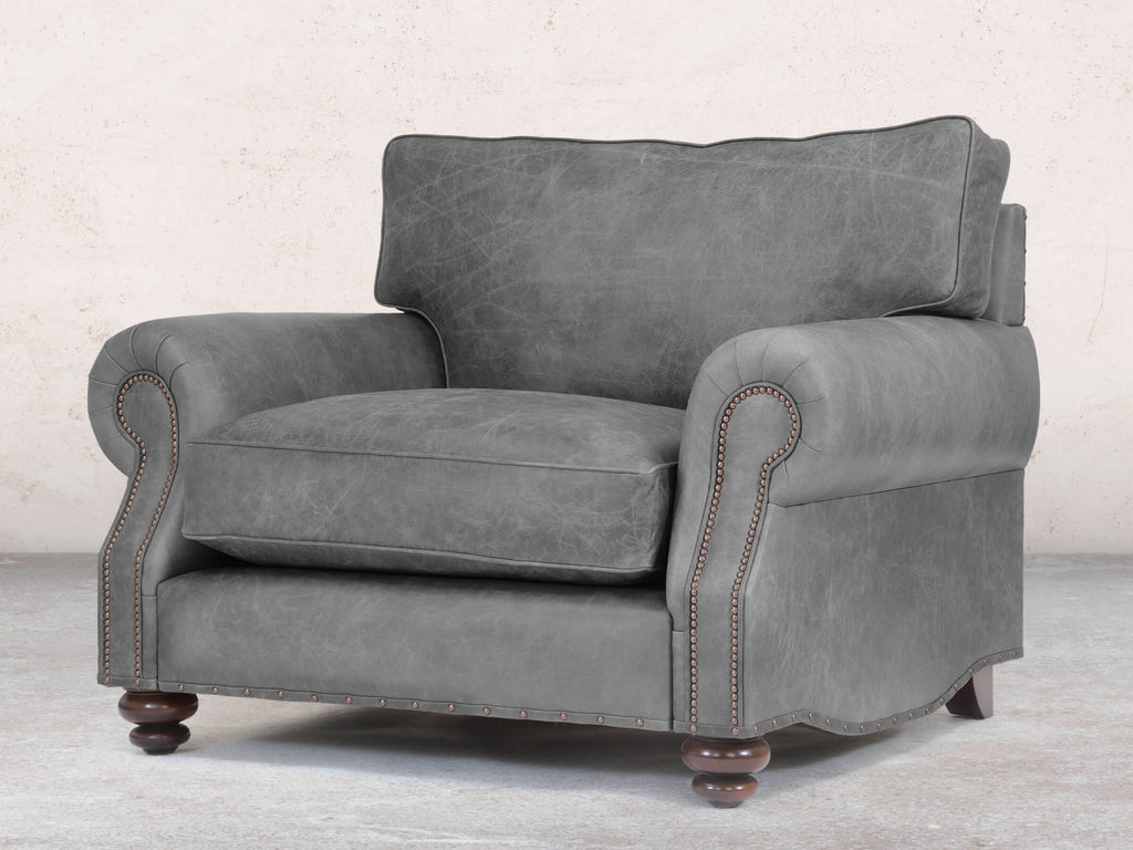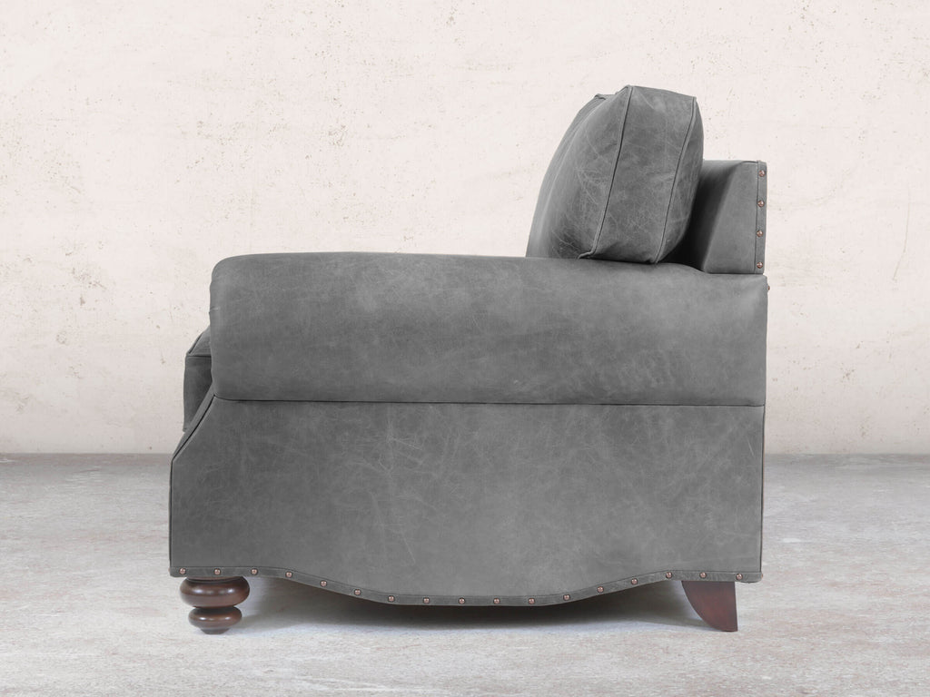 Hetty is a natural evolution of the traditional Chesterfield, designed to introduce more comfort and a relaxed, modern feel. The signature scroll arms have been lowered, and oversized, plush back cushions replace the traditional deep buttoning, creating a sumptuous, supportive feel that both embraces and cradles. The result is an exceptionally comfortable sofa with a clean, higher, box-like profile, while the gentle curves and sculpted detailing in the arms and sides preserve the refined character of the original. Subtle accents such as piping, antiqued studs, and cottage bun feet add a timeless finish that feels both luxurious and inviting. Upholstered in premium leather, Hetty combines modern comfort with enduring elegance. Handmade in the heart of England, every Hetty is made-to-order by our small team of skilled upholsterers using only the finest materials, from the solid hardwood frame and premium reflex foam fillings to carefully selected leather. With more than sixty hours of meticulous craftsmanship in each piece, Hetty delivers unrivalled durability and outstanding comfort.
