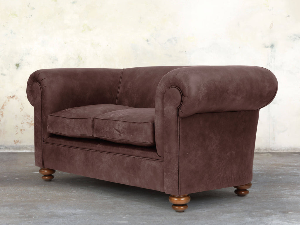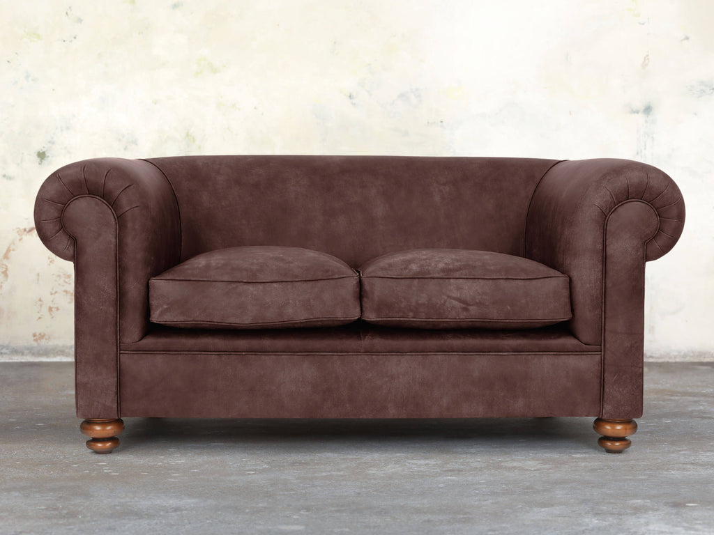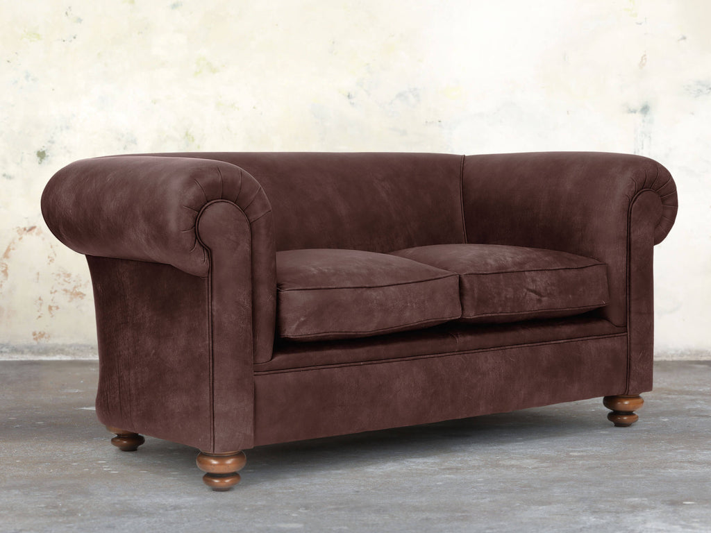 Compact yet inviting, the Jasper 2-Seater Chesterfield is built on a solid hardwood frame and filled with soft, squidgy cushioning, no-sag springs, and extra comfort layers for support. Its gently sloping back and fully sprung seat feature a multi-layered deluxe cushion, compressing softly and springing back instantly. Upholstered in rich Peat Soft 'n' Easy Leather, hand-dyed in deep browns with a hint of red, it offers earthy warmth and subtle shade variations. Hand-buffed and protected with stain-resistant technology, this compact sofa delivers luxurious comfort and practical style for smaller living spaces.