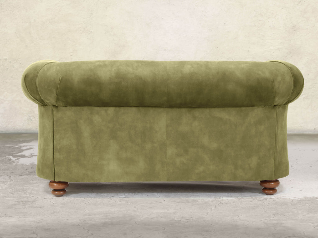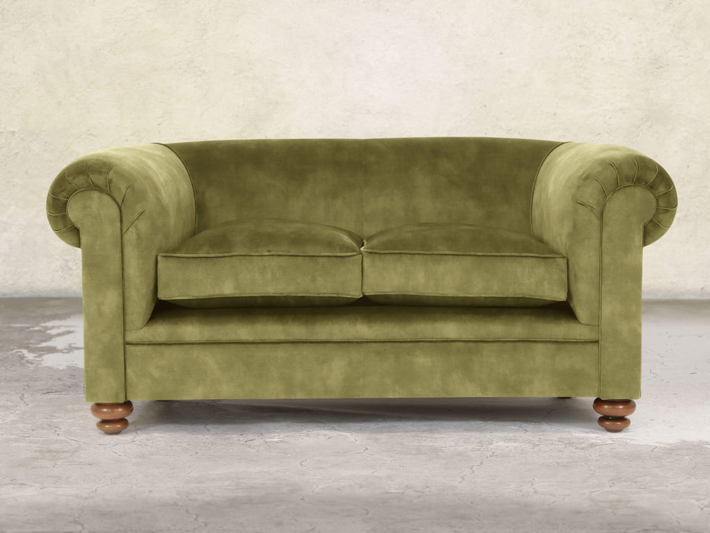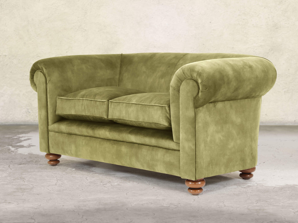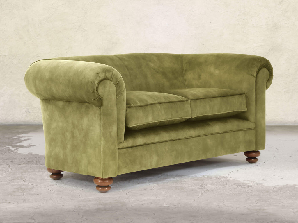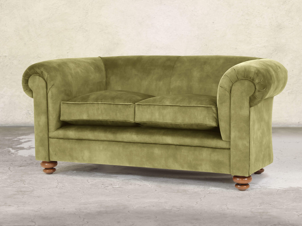 The Jasper 2-Seater in Spring Meadow brings a fresh, nature-inspired look to classic Chesterfield design. Built on a solid hardwood frame and cushioned with soft, squidgy fillings, no-sag springs, and extra comfort layers, it provides supportive comfort in a compact size. The gently sloping back and fully sprung seat feature our deluxe multi-layered cushion, which compresses softly and rebounds instantly to retain its plump shape. The green velvet has a thick, dappled pile with a subtle vintage pattern, and Stain Guard treatment keeps it spill-resistant, easy to clean, and wonderfully soft.