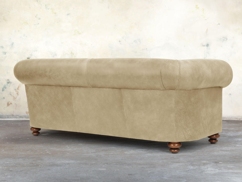 Spacious and inviting, the Jasper 3-Seater Chesterfield is crafted on a solid hardwood frame with soft, squidgy cushioning, no-sag springs, and extra comfort layers. Its fully sprung seat and gently sloping back feature our multi-layered deluxe cushion, compressing softly and springing back to retain a plump, inviting shape. Upholstered in hand-dyed Oyster Soft 'n' Easy Leather, earthy beige and soft cream undertones create a sophisticated, characterful finish. Hand-buffed for softness and protected with stain-resistant technology, this sofa blends classic Chesterfield elegance with practical comfort for larger lounges or family living.
