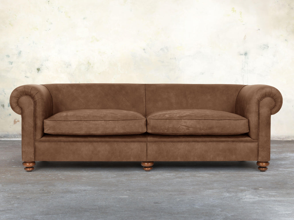 Generously sized and supremely comfortable, the Jasper 4-Seater Chesterfield is crafted on a solid hardwood frame with soft, squidgy cushioning, no-sag springs, and extra comfort layers. The fully sprung seat and gently sloping back feature a multi-layered deluxe cushion, compressing softly and springing back instantly. Upholstered in hand-dyed Bracken Soft 'n' Easy Leather, warm autumnal and creamy brown tones create a rich, characterful look. Hand-buffed and treated with stain-resistant technology, it’s a luxurious sofa that blends timeless Chesterfield elegance with practical, long-lasting comfort for larger living areas.