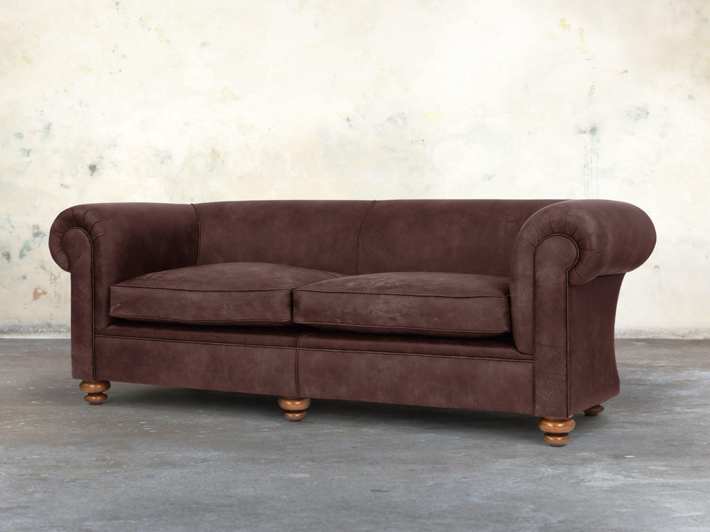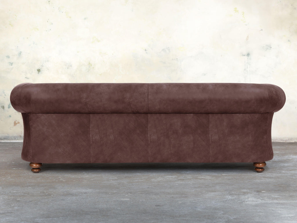 Spacious, statement-making, and wonderfully relaxing, the Jasper 4-Seater Chesterfield is built on a solid hardwood frame with soft, squidgy cushioning, no-sag springs, and extra comfort layers for full support. Its fully sprung, generous seat and gently sloping back feature a multi-layered deluxe cushion, compressing softly and springing back instantly for a plump, inviting look. Upholstered in Peat Soft 'n' Easy Leather, hand-dyed in rich earthy browns with subtle red undertones, it exudes warmth and character. Hand-buffed and protected with stain-resistant technology, this sofa is a luxurious centrepiece for larger living spaces.