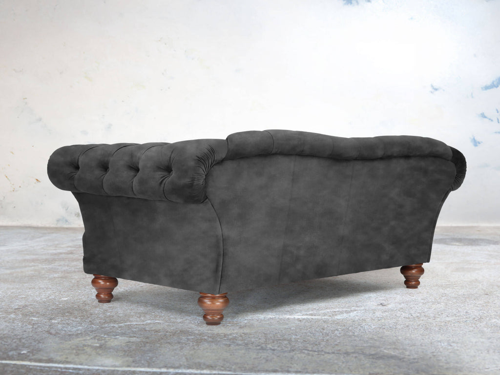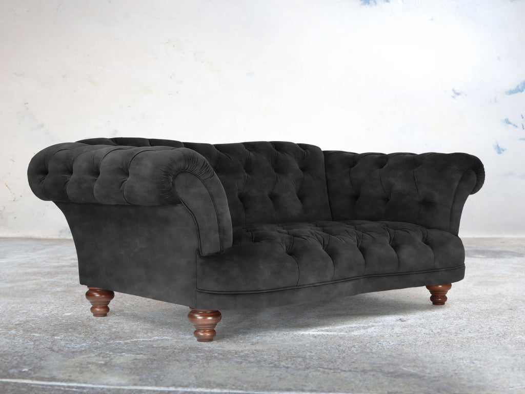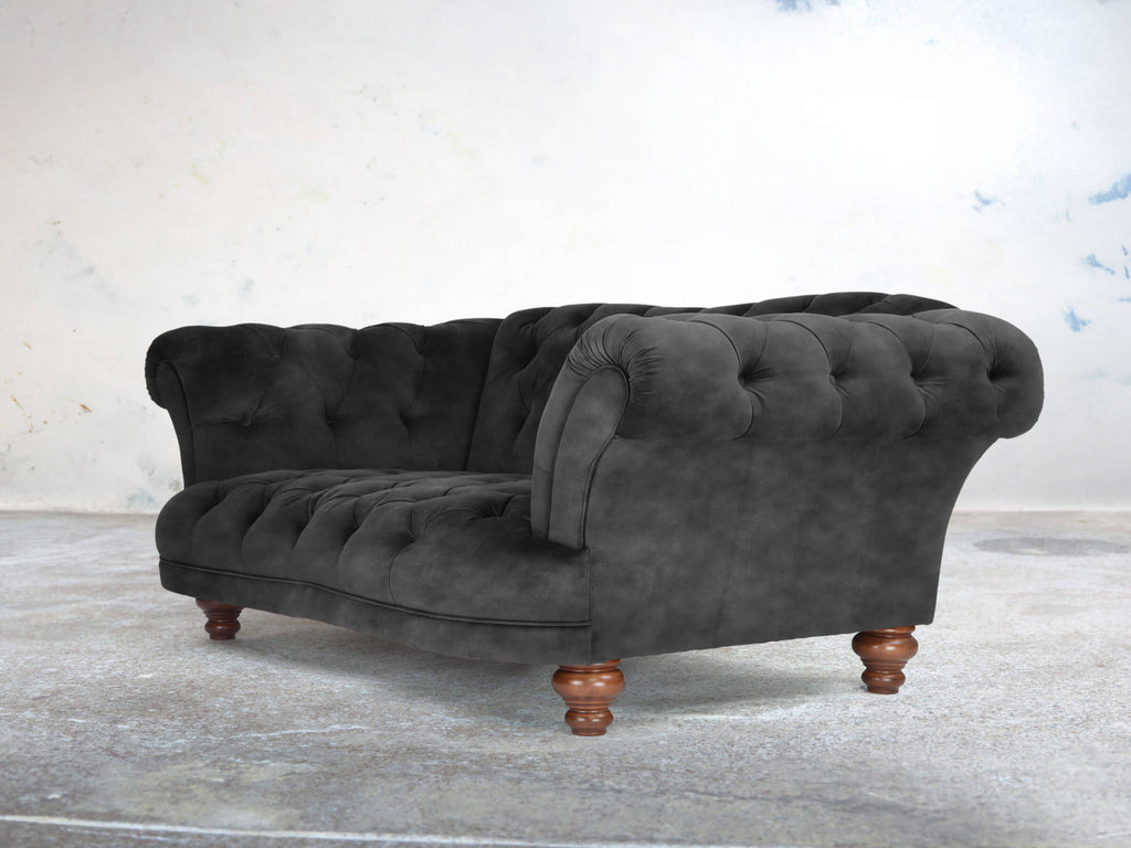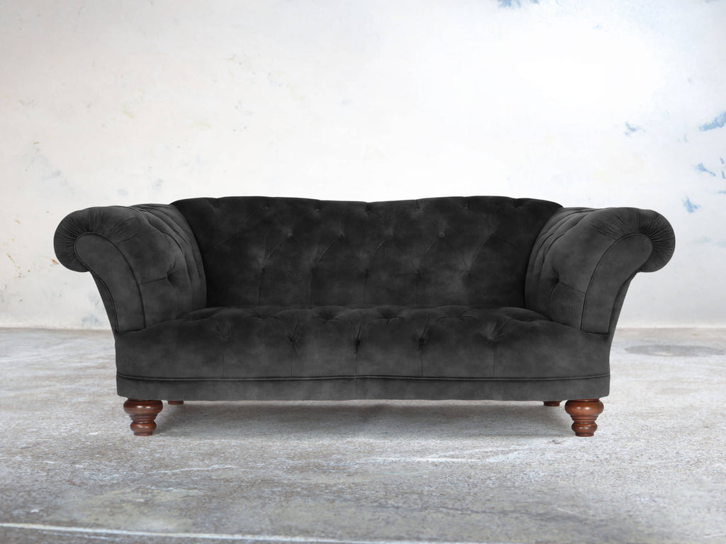 Oskar 2 Seat Chesterfield Sofa In Black Cat Vintage Velvet
