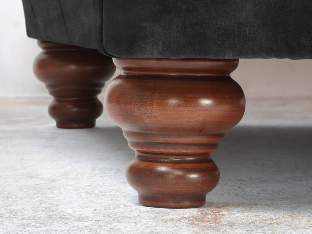 Handmade solid-wood feet in Walnut with a slightly distressed matt finish. Beehive-style to the front and back. Removable if required.