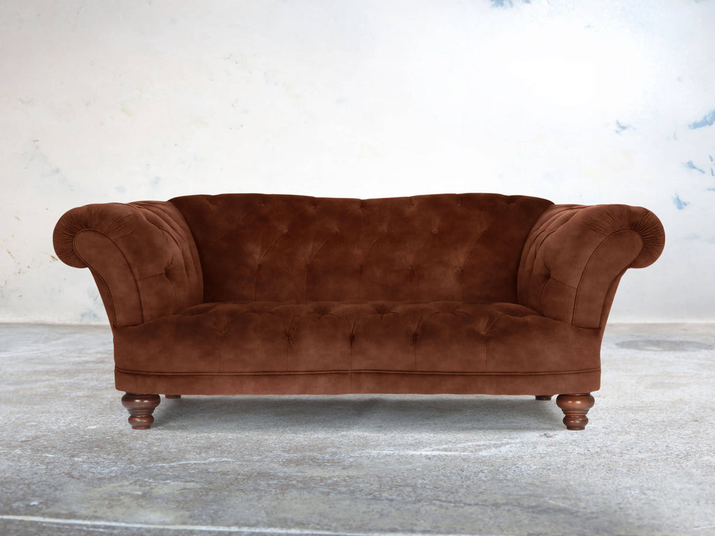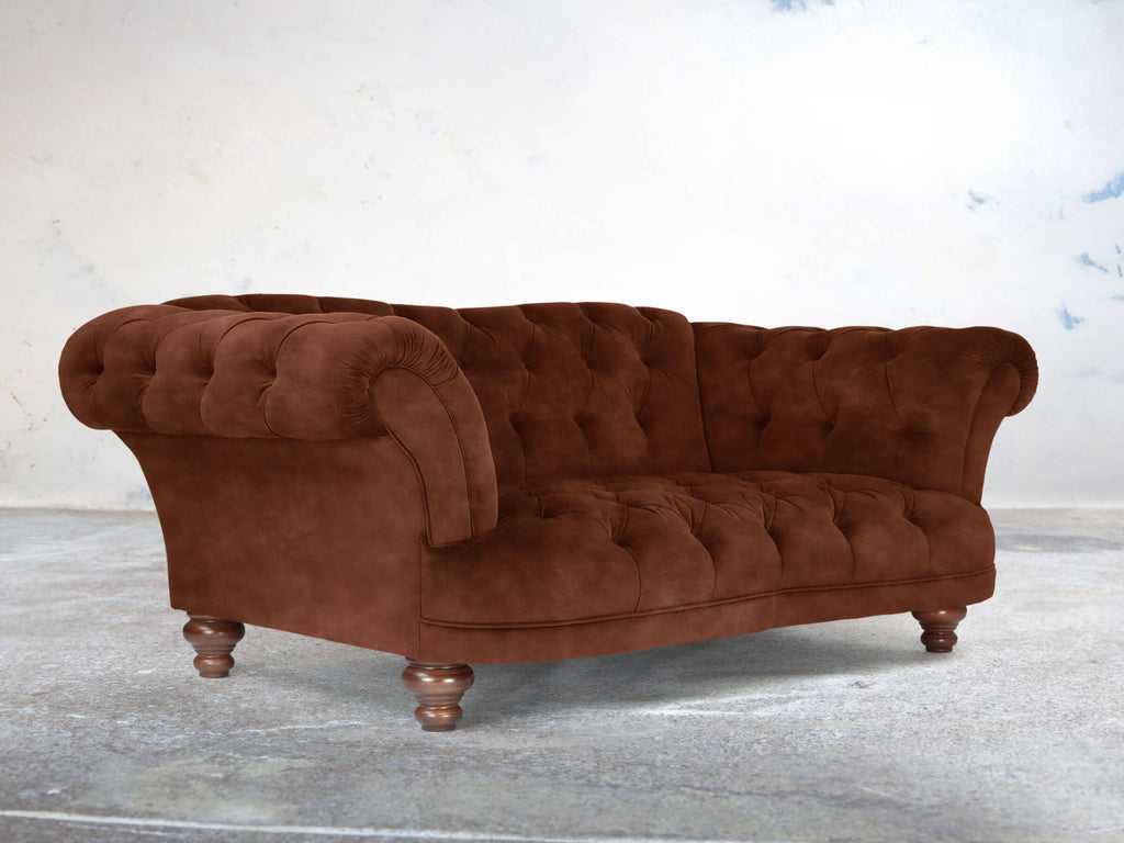 Oskar 2 Seat Chesterfield Sofa In Burnt Umber Vintage Velvet