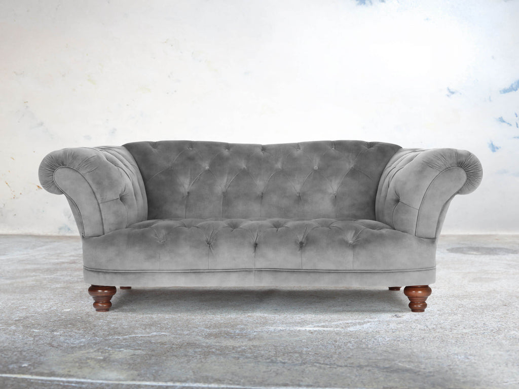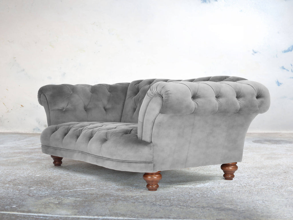 Oskar 2 Seat Chesterfield Sofa In Dove Vintage Velvet