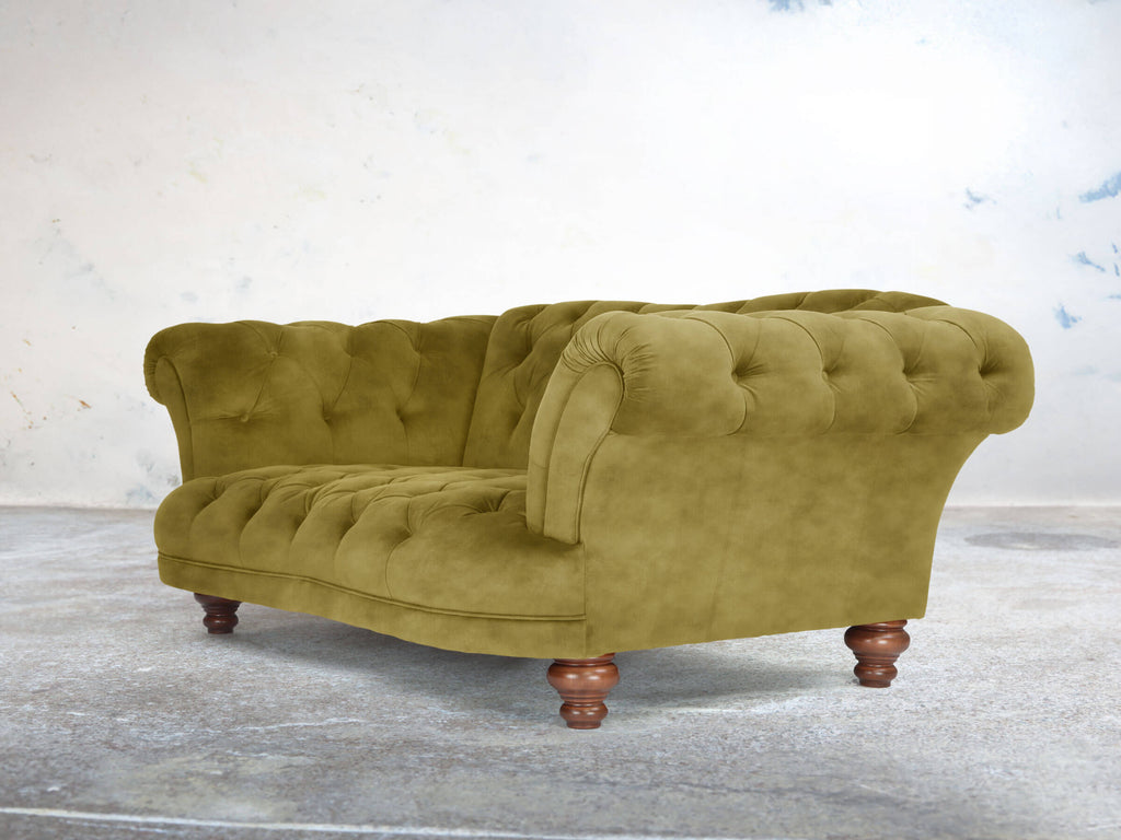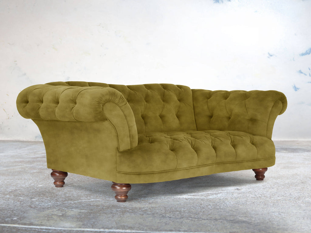 Oskar 2 Seat Chesterfield Sofa In Olive Vintage Velvet