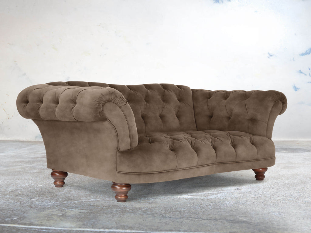 Oskar 2 Seat Chesterfield Sofa In Otter Vintage Velvet
