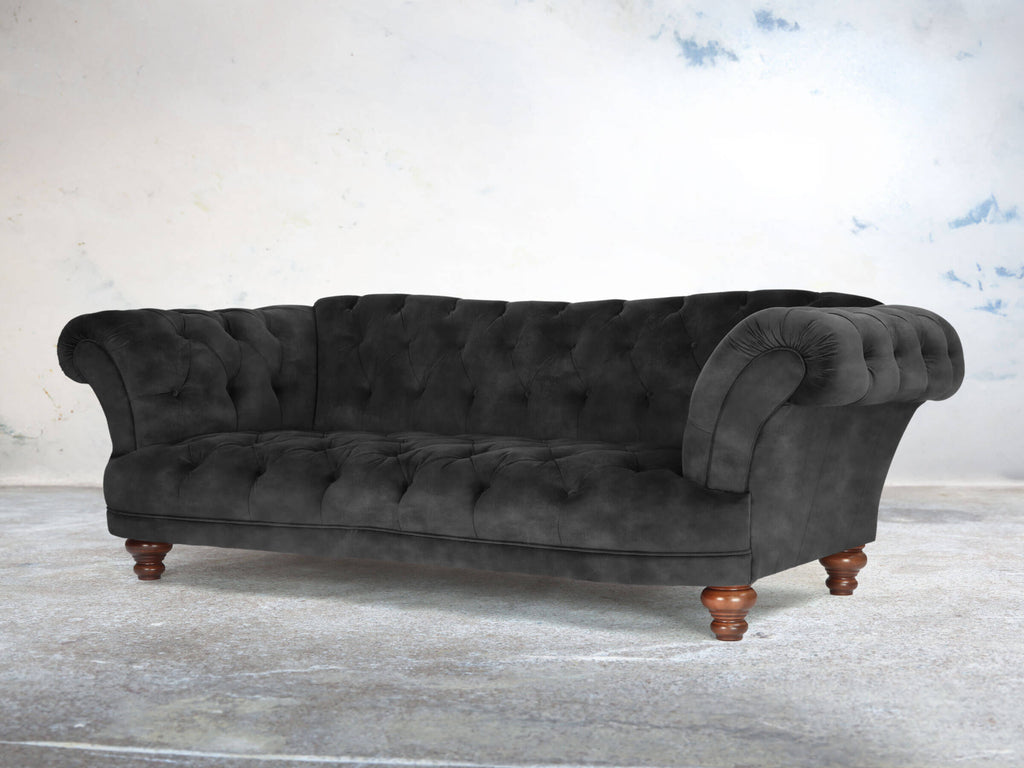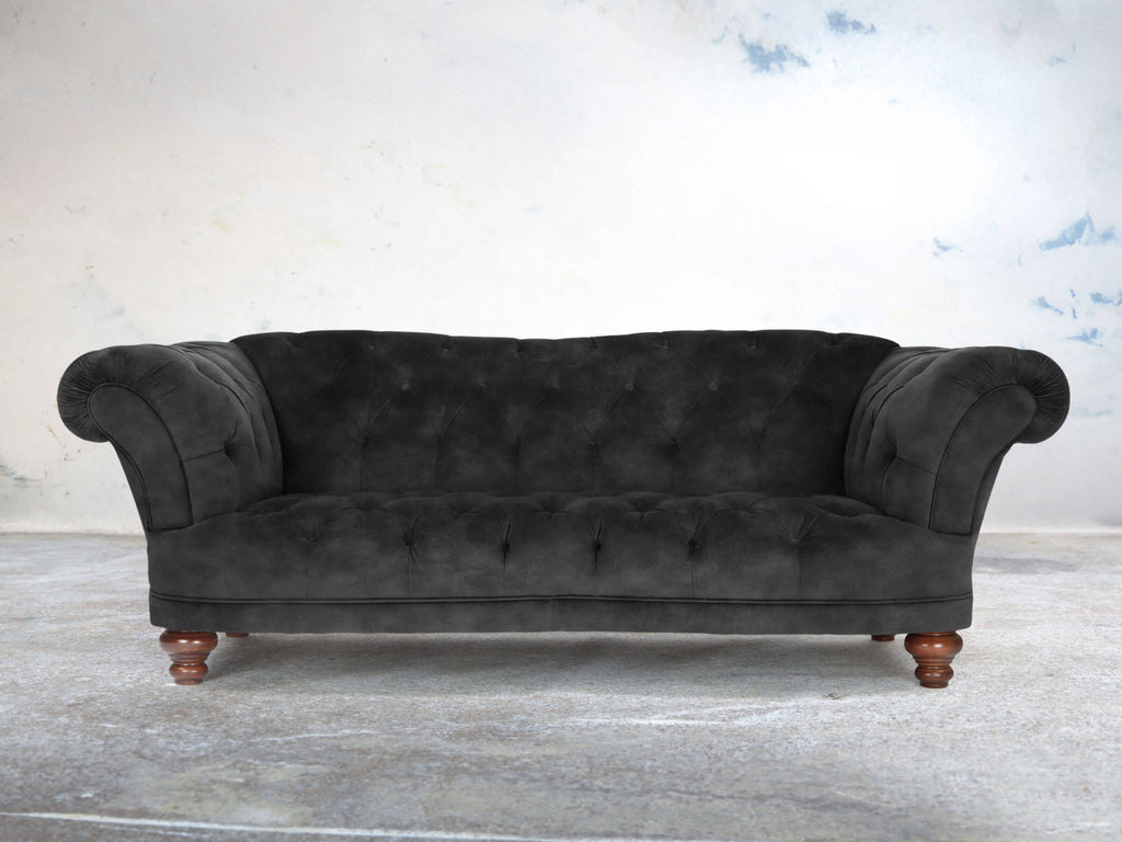 Oskar 3 Seat Chesterfield Sofa In Black Cat Vintage Velvet