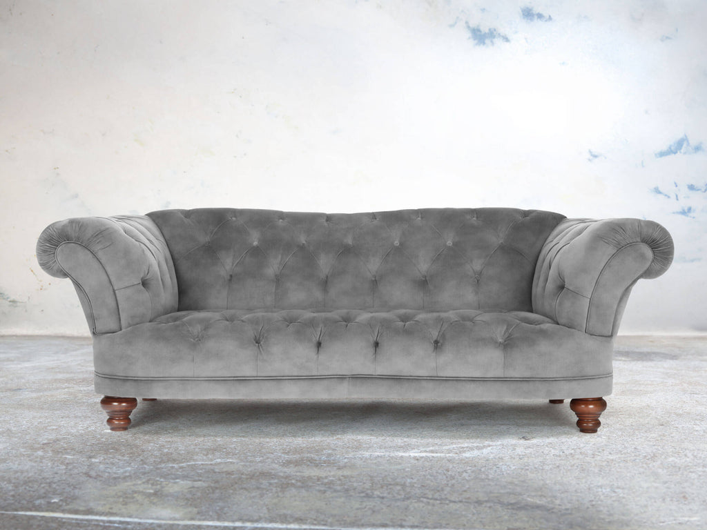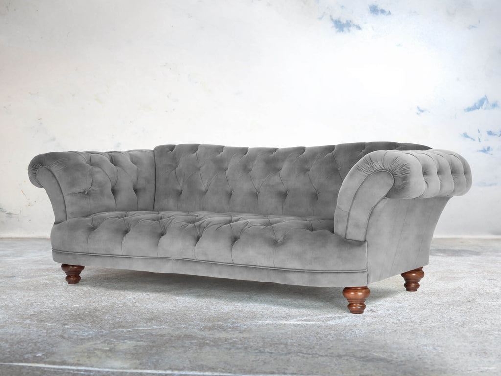 Oskar 3 Seat Chesterfield Sofa In Dove Vintage Velvet