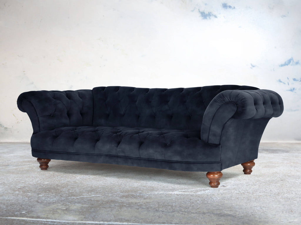 Oskar 3 Seat Chesterfield Sofa In Indigo Vintage Velvet