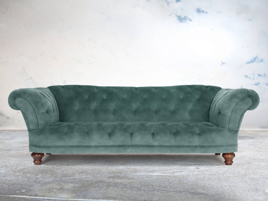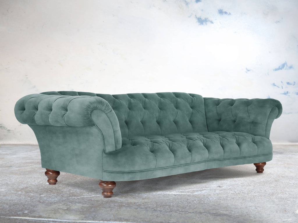 Oskar 4 Seat Chesterfield Sofa In Ocean Storm Vintage Velvet