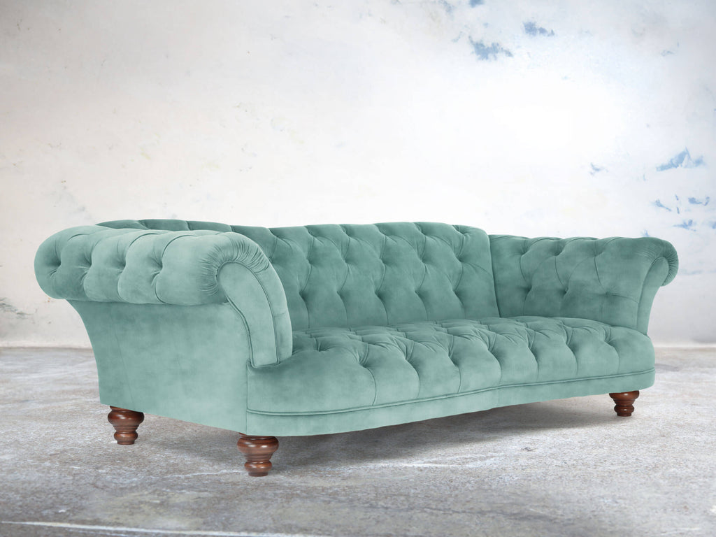 Oskar 4 Seat Chesterfield Sofa In Summer Mist Vintage Velvet