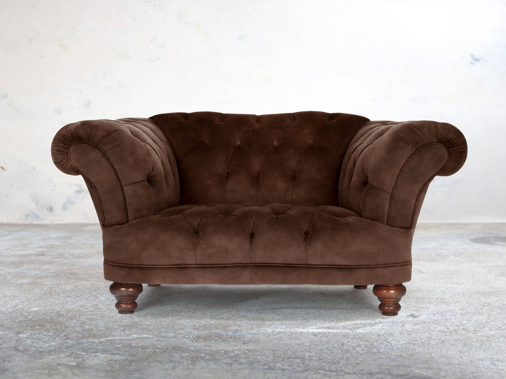 The Oskar Armchair in Hickory Vintage Velvet combines homely warmth with Chesterfield sophistication. Its deep seat, low base, and gently reclined back provide an inviting place to relax, while reflex foam cushioning maintains plush support. Hickory’s rich brown pile features a thick, textured finish with subtle vintage patterning. Super Stain Guard treatment keeps it spill-resistant, easy to clean, and soft to the touch. Compact yet stylish, this armchair brings comfort, timeless elegance, and practicality to any space, perfect for cosy corners or reading areas that require both style and functionality.