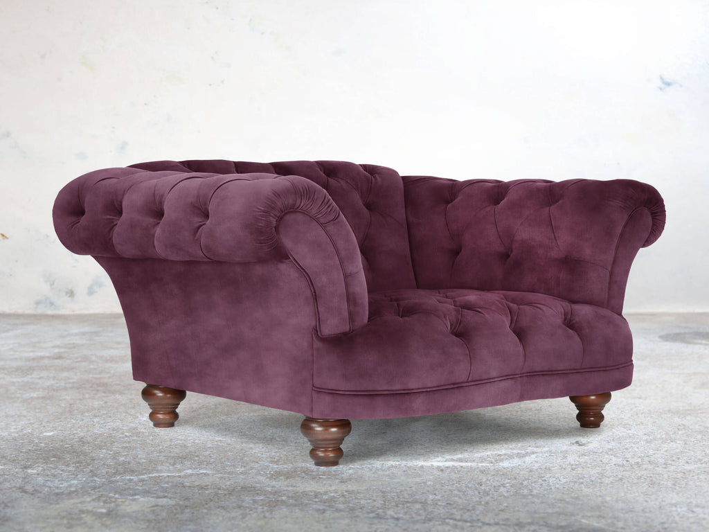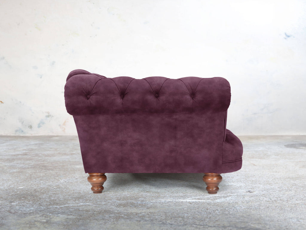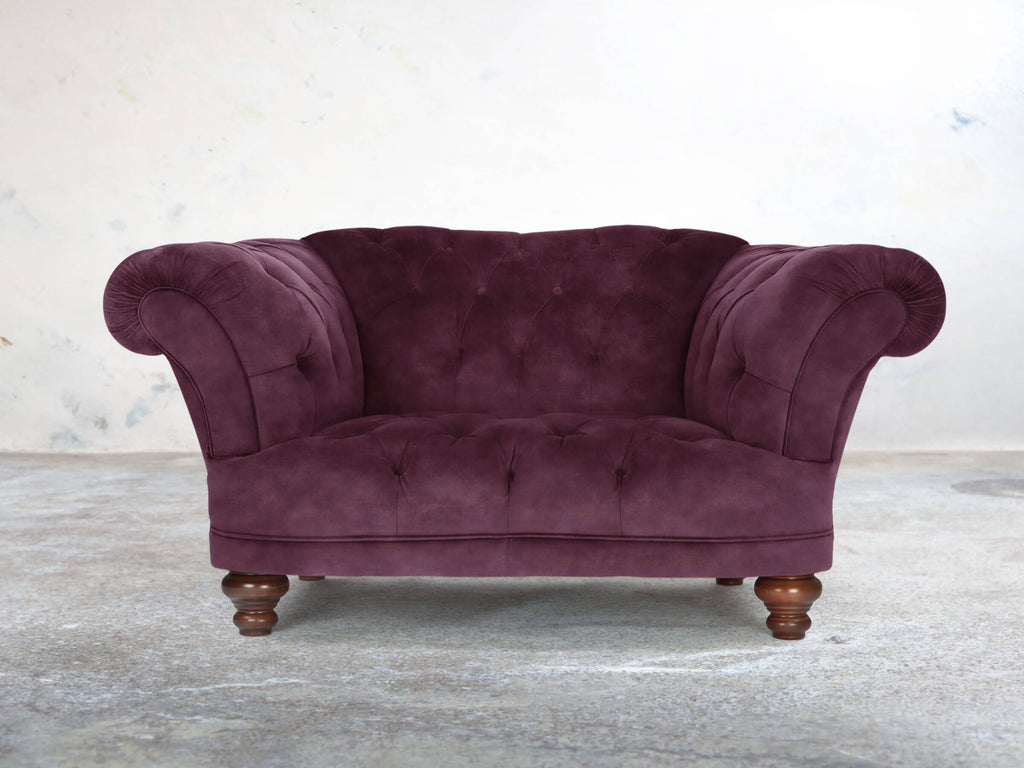 The Oskar Armchair in Imperial Vintage Velvet brings rich, opulent style to your home. Its deep seat, low base, and gently reclined back create a comfortable retreat, while the reflex foam cushioning remains plush over time. Imperial’s deep purple pile offers a clouded, textured finish, complemented by a subtle vintage print. Super Stain Guard treatment ensures spills are easily managed, keeping the armchair soft and luxurious. Compact yet striking, it adds a bold, sophisticated touch to any room, combining timeless Chesterfield design with contemporary comfort and practical durability.