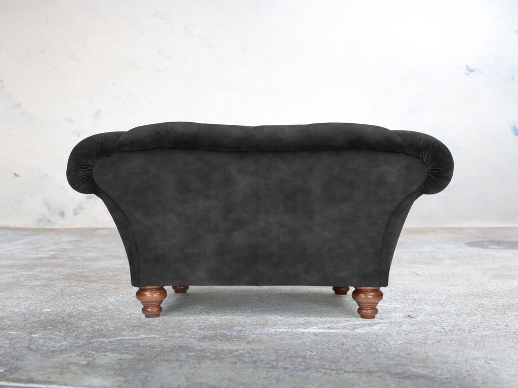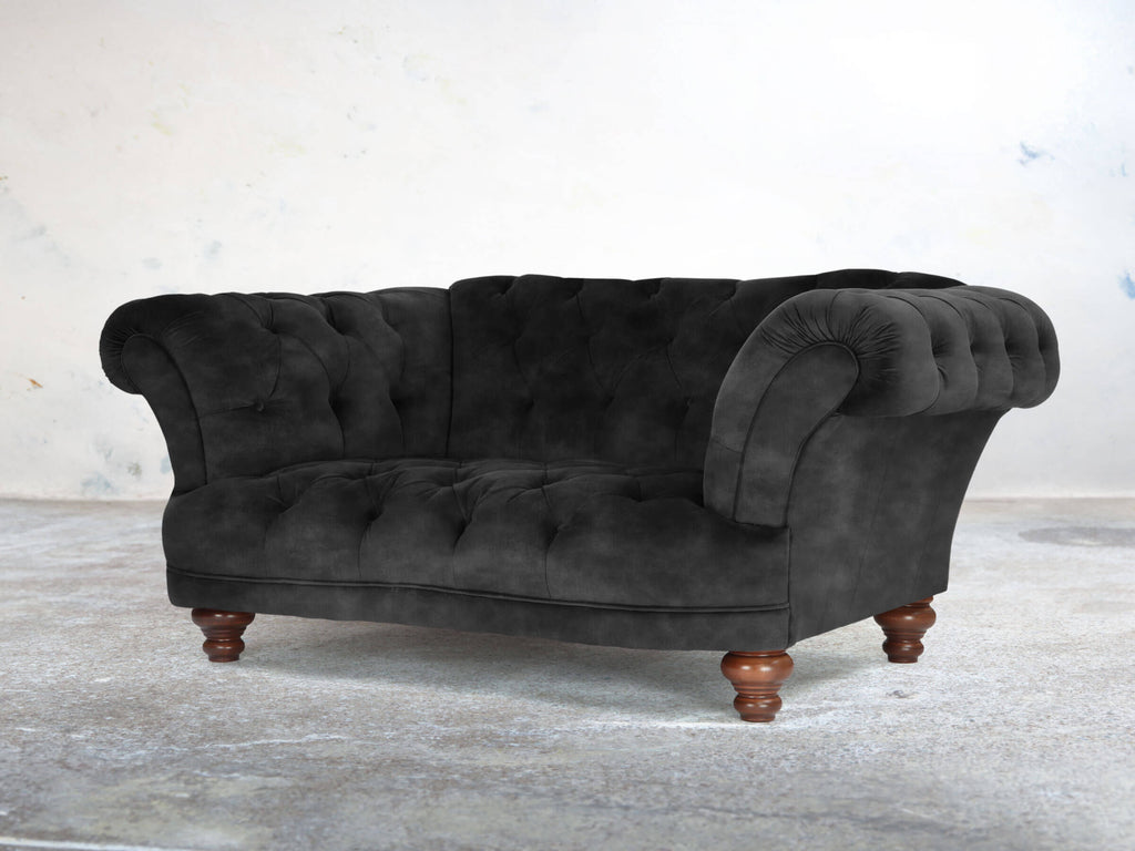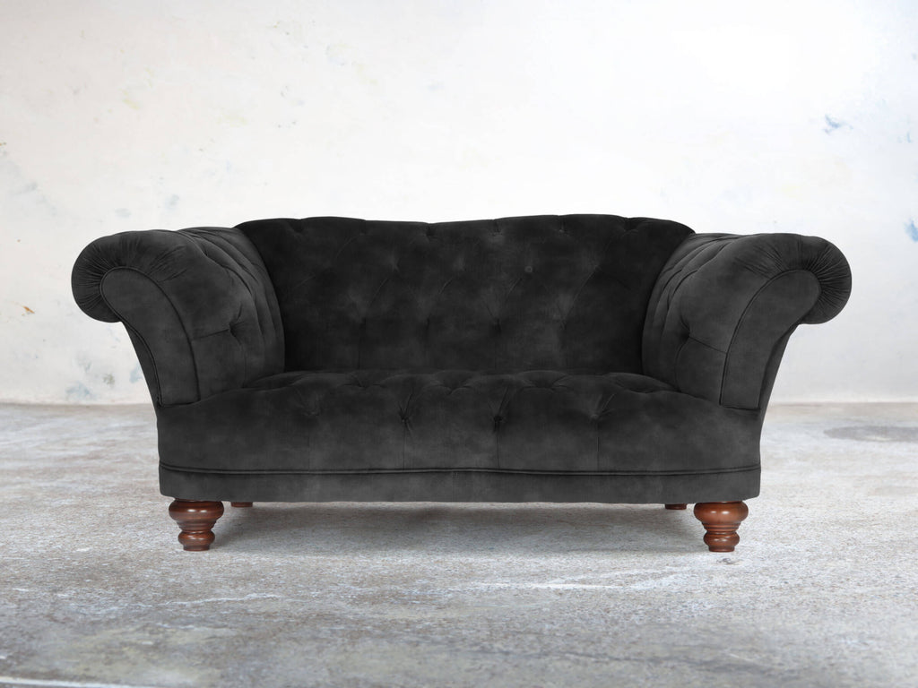 The Oskar Snuggler in Black Cat Vintage Velvet brings deep, luxurious tones to a cosy two-person space. Its deep seat, low base, and gently reclined back offer a welcoming spot, while reflex foam cushioning provides long-lasting comfort. Black Cat’s thick, mottled pile is complemented by subtle vintage detailing. Stain Guard treatment ensures spill-resistance, easy maintenance, and plush softness. Compact yet elegant, this snuggler combines bold colour, practicality, and classic Chesterfield style, making it a stylish, comfortable, and versatile addition to small lounges or intimate corners in any home.