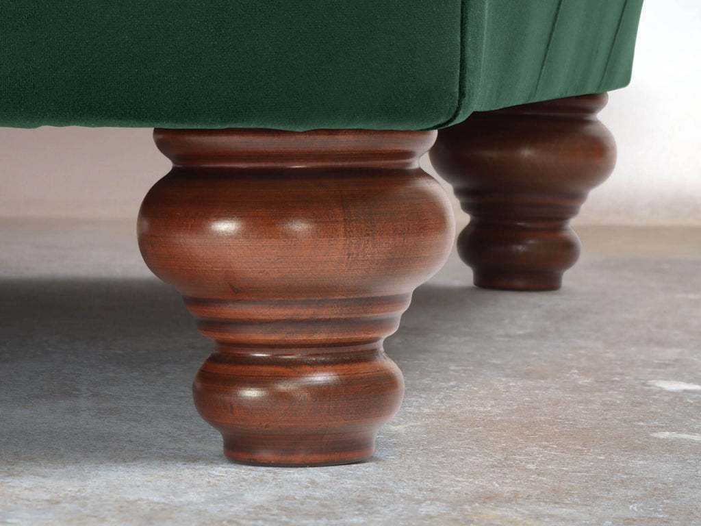 Handmade solid-wood feet in Walnut with a slightly distressed matt finish. Beehive-style to the front and back. Removable if required.