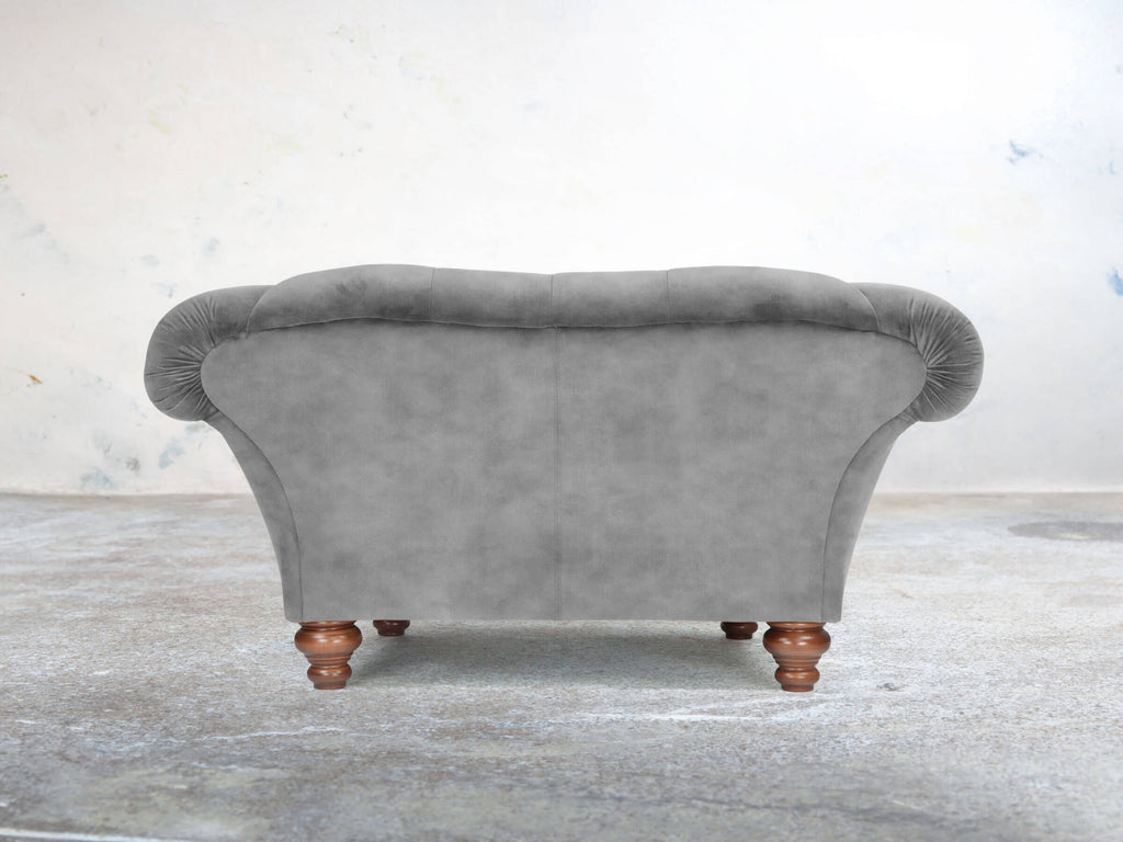 The Oskar Snuggler in Dove Vintage Velvet offers a natural grey, soothing retreat for two. Deep seating, a low base, and a gently reclined back create a comfortable space, complemented by reflex foam cushioning that remains plush. Dove’s mottled, textured pile is enhanced by a subtle printed vintage pattern. Stain Guard ensures it is spill-resistant, easy to maintain, and luxuriously soft. Compact yet inviting, this snuggler delivers classic Chesterfield elegance, modern comfort, and everyday practicality, making it ideal for smaller lounges, cosy corners, or any space needing a stylish, intimate seating option.