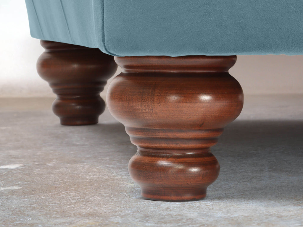 Handmade solid-wood feet in Walnut with a slightly distressed matt finish. Beehive-style to the front and back. Removable if required.