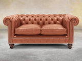 Polly 2 Seat Chesterfield Sofa In Auburn Lux Leather
