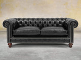 Polly 3 Seat Chesterfield Sofa In Pitch Lux Leather