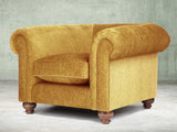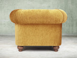 Curvaceous and inviting, this Chesterfield Armchair is stuffed with soft squidgy fillings, plenty of super no-sag springs and extra layers of super soft padding all carried on a solid hardwood frame. Tillie has an extra generous deep seat topped with our specially developed multi-layered deluxe cushion that makes for scrumptiously soft seating. Dressed in our Gold Funky Cord, a corduroy fabric that has a tactile weave with a wonderful softness and a velvet-like appearance. Being 100% polyester, it is exceedingly durable, holds its shape well and does not easily get stretched or go baggy.