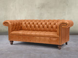 Wilbur 3 Seat Chesterfield Sofa In Ginger Classic Leather