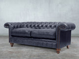 Winston 3 Seat Chesterfield Sofa In Navy Classic Leather