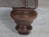 Handmade solid-wood feet in Walnut with a slightly distressed matt finish. Beehive-style to the front, with a tapered leg at the back. Removable if required.